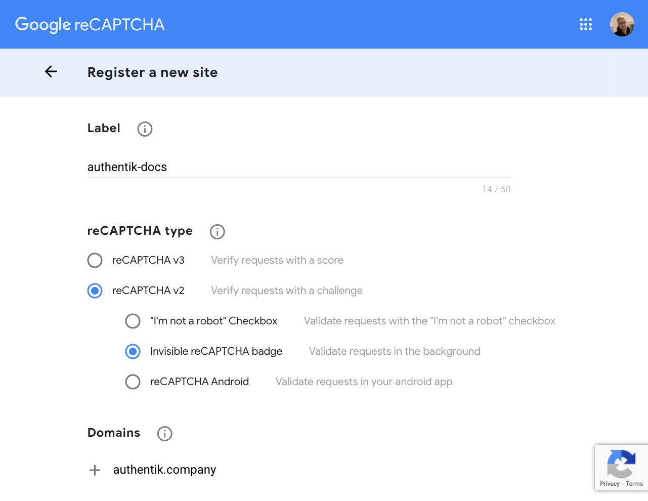 This stage has two required fields: Public key and private key. These can both be acquired at https://www.google.com/recaptcha/admin.